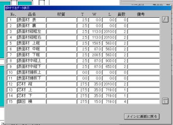 | ◆各芯材の寸法データ、員数を拾い出します。 |