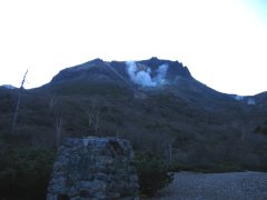 6:30 牛ヶ首に到着。 盛んに火山ガスを含んだ蒸気を吹き上げています。 |