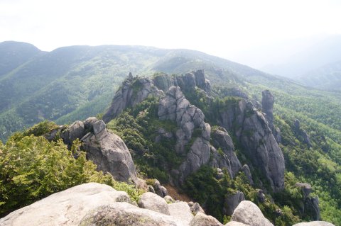 先の方に五丈岩と金峰山の山頂が見えてきました。 | |