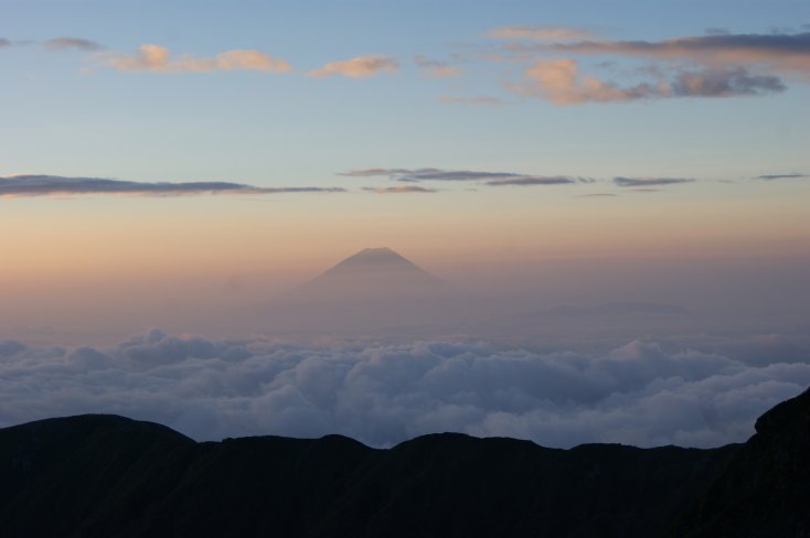 | 7月31日 今日は長いトレイルになりますので3:30に小屋を出発して農鳥岳へ向かいます。 |