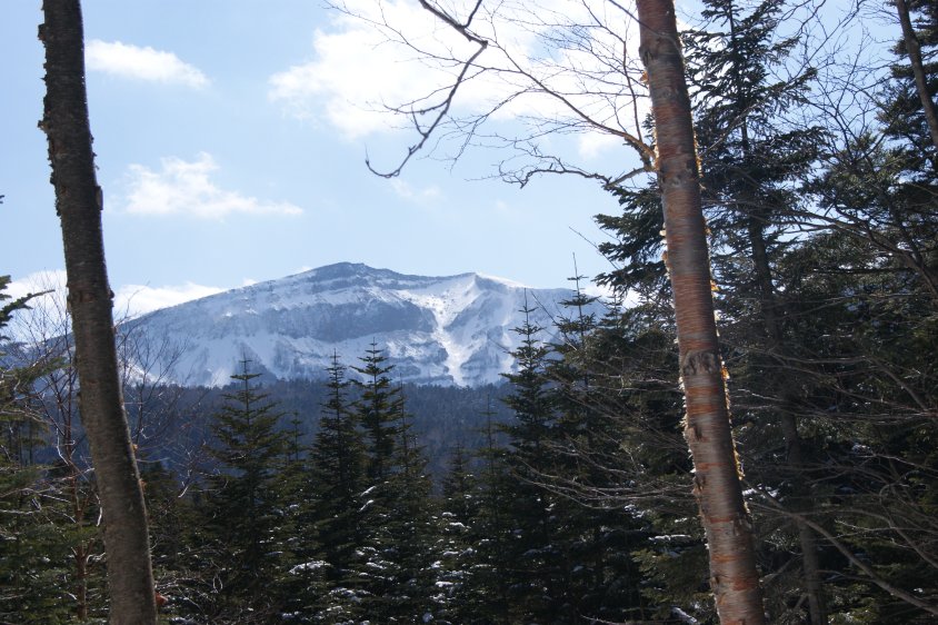 | 途中から硫黄岳が見えるポイントがありました。逆光気味ですが硫黄岳の岸壁が綺麗です。 | |